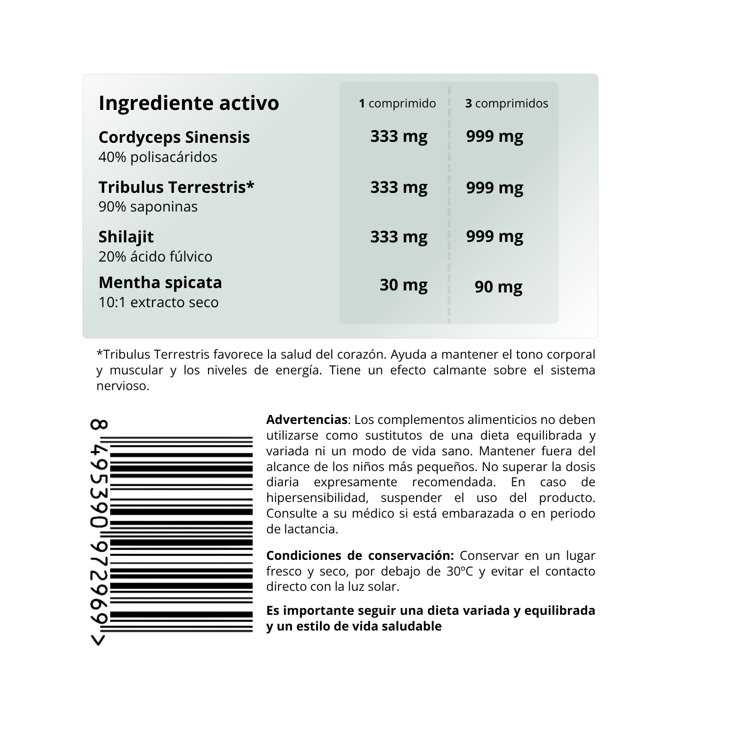 Elite TCS® es el primer suplemento integral de alto rendimiento formulado en Europa con calidad farmacéutica. Se trata de un programa de 90 días que combina ingredientes bioactivos únicos —Cordyceps, Shilajit, Tribulus terrestris y Menta spicata— en una sinergia clínicamente respaldada para potenciar cuerpo y mente.